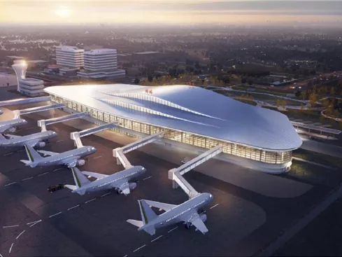 • Тэрмінал аэрапорта са сталёвай рамайТэрмінал аэрапорта са сталёвай рамай