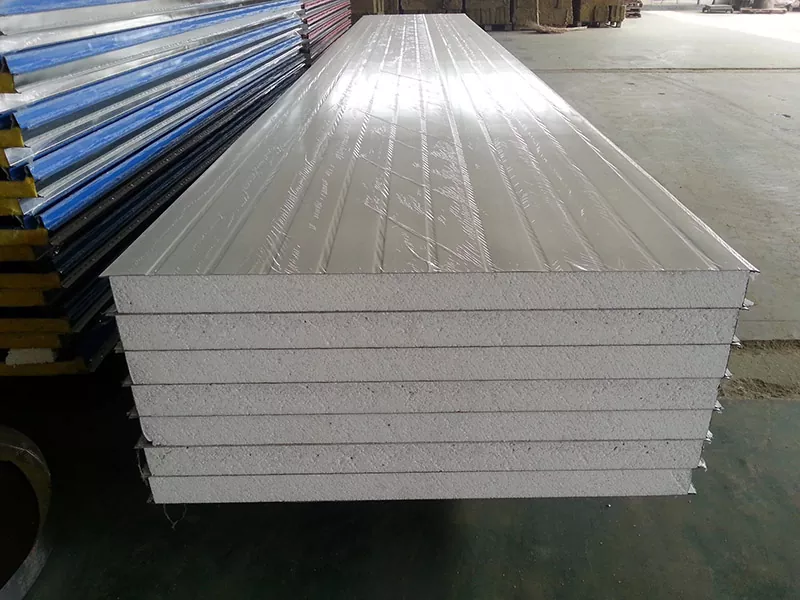 Сэндвіч-панэль EPS складаецца з двух вонкавых слаёў, звычайна зробленых са сталі або алюмінія, якія замыкаюць ядро ​​EPS. Пласты металу забяспечваюць трываласць і даўгавечнасць, абараняючы ядро ​​EPS ад пашкоджанняў і забяспечваючы структурную цэласнасць панэлі. Камбінацыя асяродку EPS і металічных слаёў стварае моцную, лёгкую і энергаэфектыўныя панэлі, якія простыя ў мантажы і абслугоўванні.