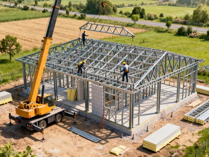 • Будаўніцтва дома з зялёнай сталёвай канструкцыіБудаўніцтва дома з зялёнай сталёвай канструкцыі