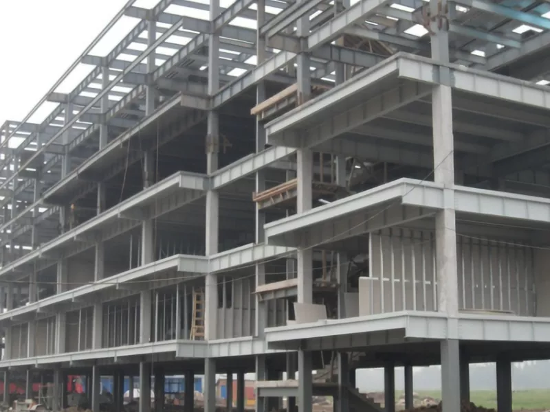 ● Калоны і бэлькі: Каркас будынка ў асноўным складаецца са сталёвых калон і бэлек. Гэтыя кампаненты прызначаны для таго, каб вытрымліваць вагу канструкцыі і раўнамерна размяркоўваць нагрузку.
